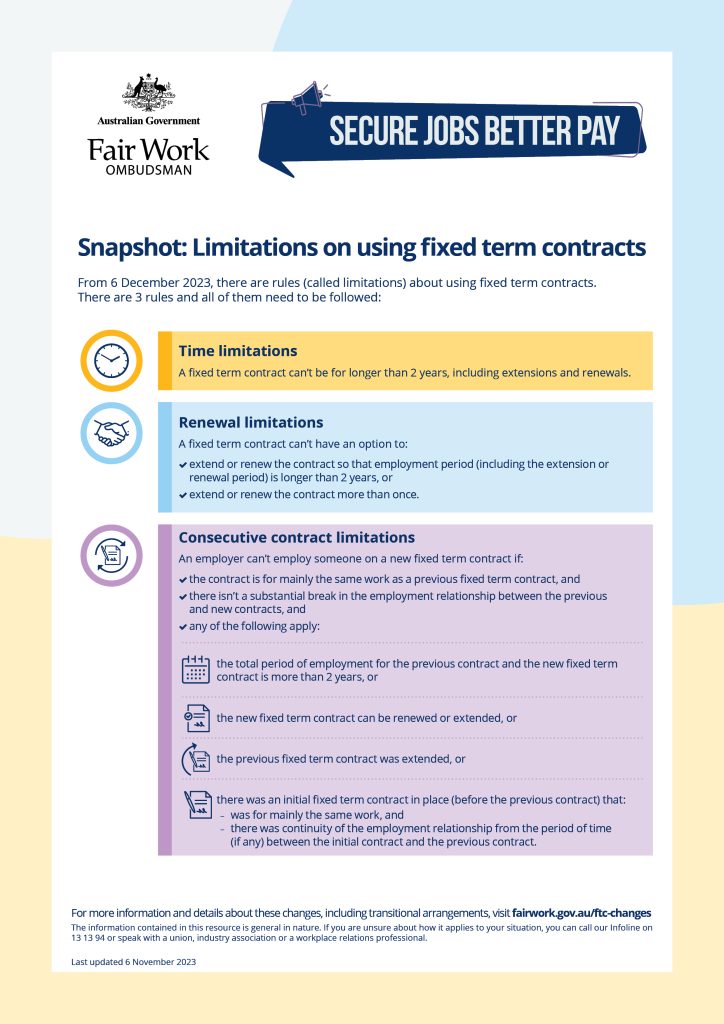 From Wednesday 6 December 2023, new rules apply when engaging employees on fixed term contracts.